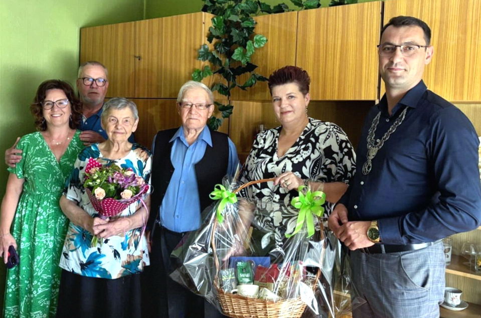Burmistrz złożył jubilatom serdeczne gratulacje oraz życzenia wielu kolejnych lat w zdrowiu, miłości i radości.