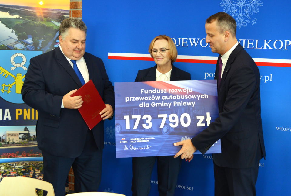 13 lutego Wojewoda Wielkopolski Agata Sobczyk podpisała umowę z Burmistrzem Gminy Pniewy Jarosławem Szurką na dofinansowanie w ramach Funduszu Rozwoju Przewozów Autobusowych dla Gminy Pniewy na rok 2025. To kolejne wsparcie dla gminy w zakresie komunikacji publicznej w ostatnich latach.