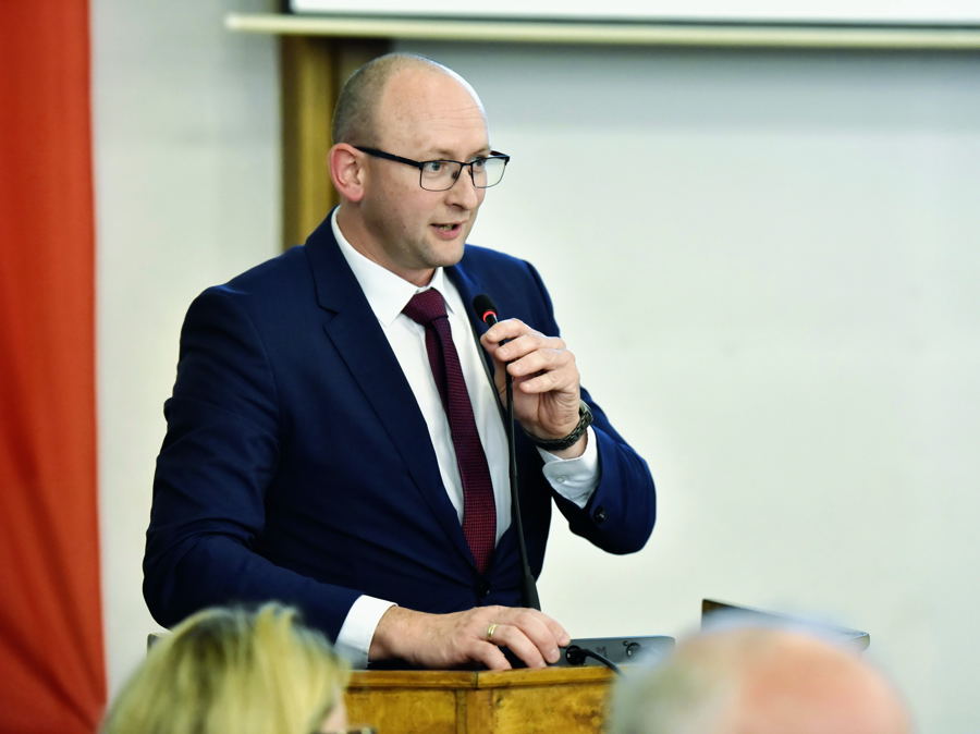 Foto u góry: Łukasz Heckert, wiceprzewodniczący rady, w krótkich żołnierskich słowach wyjaśnił, co myśli o epoce rządów Kaczmarka.