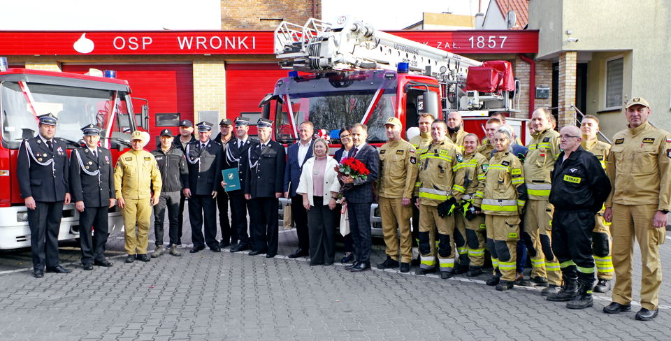 Październik okazał się bardzo owocny dla wronieckich strażaków. Do służby trafił młodszy o 5 lat podnośnik koszowy. Kilka dni później podpisano umowę na dostawę fabrycznie nowego, średniego wozu bojowego z napędem 4×4. Ma być dostarczony do końca 2024 r.