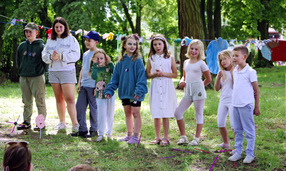 Foto u góry: Efektem prób i przygotowań była krótka sztuka teatralna „Lot w kosmos” przedstawiona w piątek 8 sierpnia podczas pikniku rodzinnego w parku jordanowskim przy ul. Kuźnice