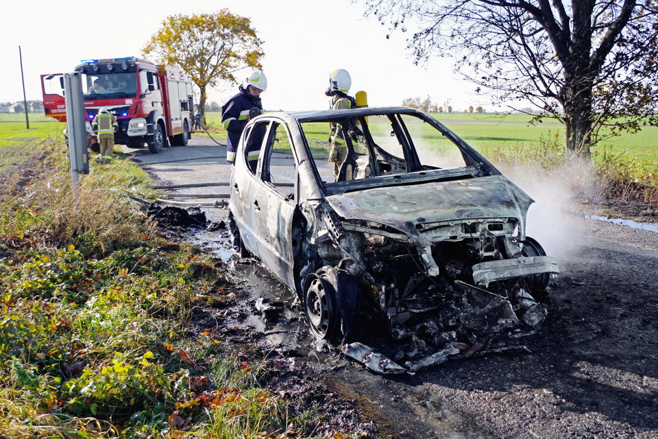 W czwartek 24 października po godz. 14 na drodze powiatowej Ordzin – Obrowo, w pobliżu przejazdu kolejowego, zapalił się samochód osobowy Mercedes klasy A pierwszej generacji (W168). Właściciel dopiero co wyjechał z pracy i daleko nie dotarł. Niestety ognia nie udało się stłumić. W ciągu kilkunastu minut samochód spłonął całkowicie. Z hukiem pękały opony, w końcu wybuchła butla LPG. Kłęby czarnego dymu było widać z odległości ponad 10 km. Dyspozytor wysłał do akcji w gminie Obrzycko nietypowo jednostkę OSP Ostroróg i OSP Piotrowo, już do asystowania. Przyczyną pożaru było prawdopodobnie zwarcie w instalacji elektrycznej. RB