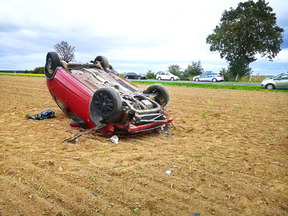 W pobliżu miejscowości Czyściec (gm. Szamotuły) dachował w sobotę 5 października, w południe, samochód osobowy.