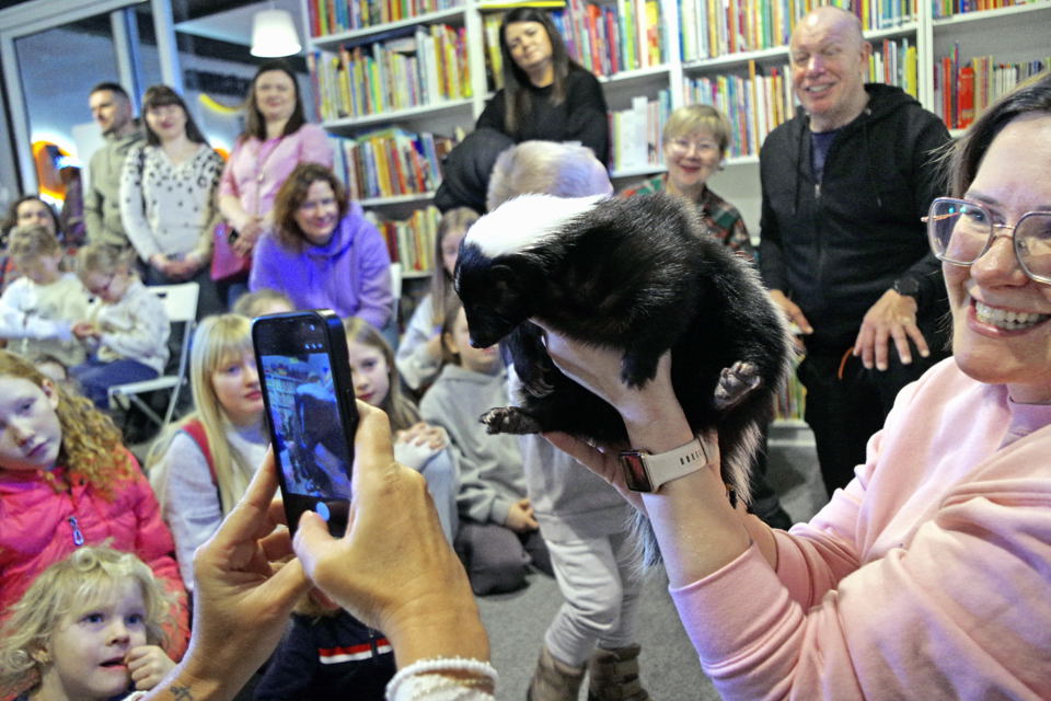 Angelika Raszewska z biezdrowskiej „Brykolandii” przywiozła do biblioteki 8-miesięczną skunksiczkę o imieniu Lori. Zwierzątko trafiło do Biezdrowa jako półdzikus z hodowli. Długie cztery miesiące trwało zdobycie jego zaufania, żeby w końcu zechciało przyjść do opiekunki.