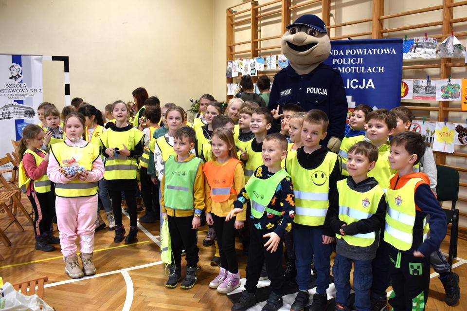 Nadrzędnym celem konkursów było promowanie bezpieczeństwa, dlatego finał akcji stał się doskonałą okazją nie tylko do wręczenia nagród zwycięzcom, ale i do przypomnienia podstawowych zasad bezpieczeństwa na drodze oraz podczas zabawy. Dodatkowo uczniowie klas pierwszych „trójki” przygotowali występ muzyczny oraz pokaz… mody odblaskowej.
