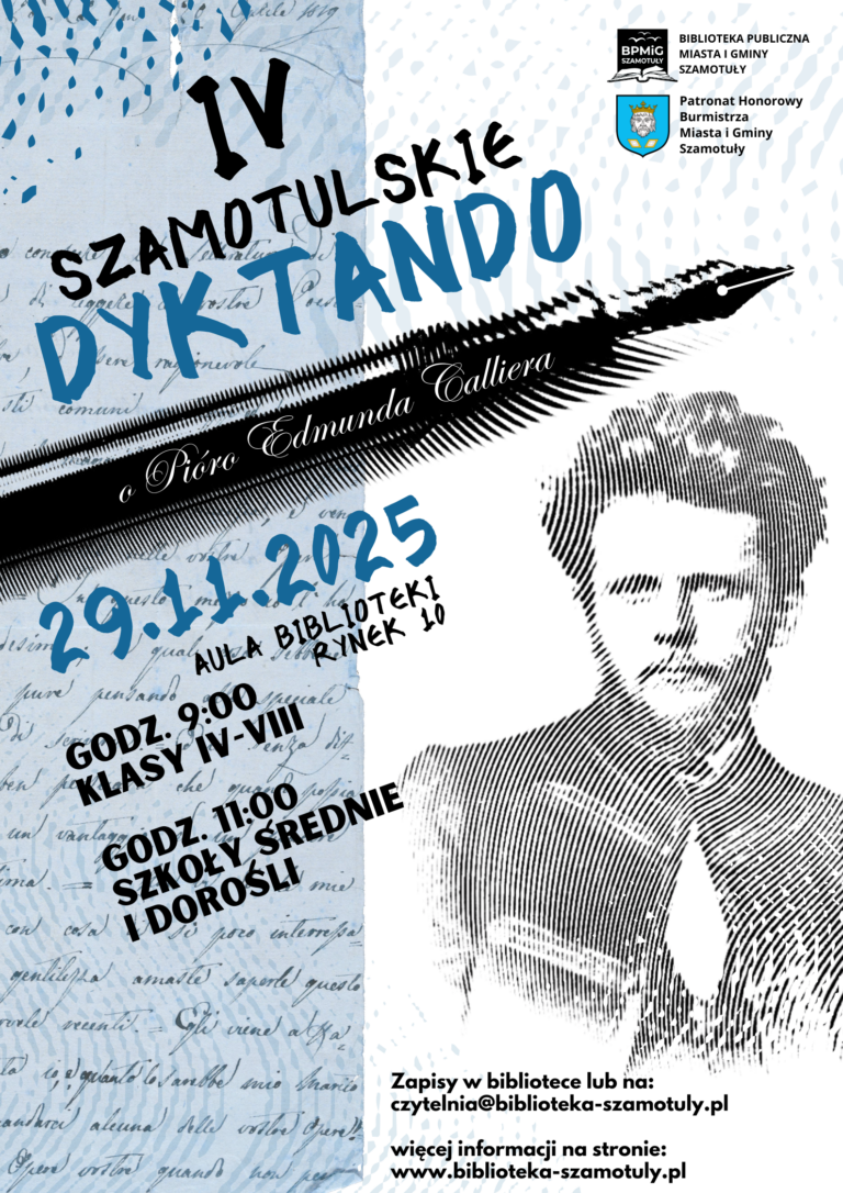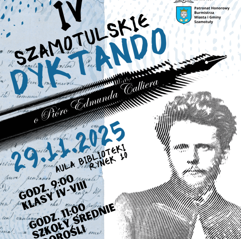 Już po raz czwarty szamotulanie będą mogli zawalczyć o Pióro Edmunda Calliera. Na Szamotulskie Dyktando o Pióro Edmunda Calliera biblioteka miejska w Szamotułach zaprasza już w sobotę 29 listopada.