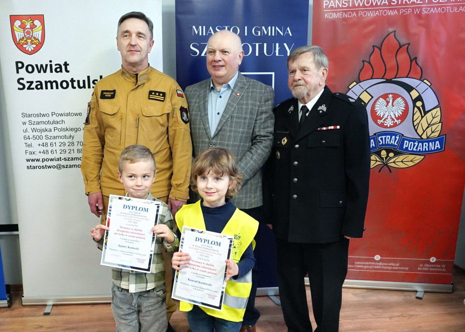 „Strażacy w służbie drugiemu człowiekowi – nie tylko w czasie pożaru” to tytuł ogólnopolskiego konkursu plastycznego dla dzieci i młodzieży. Właśnie został rozstrzygnięty etap powiatowy. Uroczyste wręczenie nagród miało miejsce w siedzibie Komendy Powiatowej Państwowej Straży Pożarnej w Szamotułach. Laureatom nagrody wręczyli wicestarosta Przemysław Nowak, burmistrz Szamotuł Piotr Michalak, komendant powiatowy Państwowej Straży Pożarnej w Szamotułach st. bryg. Ireneusz Pers oraz prezes Zarządu Oddziału Powiatowego ZOSP RP w Szamotułach dh Zenon Pawlaczyk.
