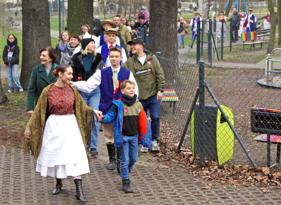 Wielka Orkiestra Świątecznej Pomocy bywa pretekstem do realizacji oryginalnych pomysłów. Zespół Tańca Polskiego „Wronki” zaproponował bicie rekordu w grupowym tańczeniu poloneza. W niedzielę 26 stycznia o godz. 15:30 wronczanie i goście zebrali się w parku im. Cyryla Sroczyńskiego. – Niczym się nie przejmuj, wszystkiego Cię nauczymy! – apelowali pomysłodawcy akcji. I rzeczywiście, kto wątpił w swoje zdolności, mógł dostać do pary tancerkę lub tancerza z ZTP Wronki. Z głośnika poleciał klasyczny polonez „Pożegnanie Ojczyzny” Mikołaja Ogińskiego i korowód ruszył alejkami parkowymi. Polonez został odtańczony godnie, chociaż spójnej koordynacji dygnięć w tak dużej grupie nie udało się osiągnąć. Żeby potwierdzić ostateczną liczbę uczestników bicia rekordów, „metkowano” ich za pomocą papierowych opasek na nadgarstkach. Okazało się, że zatańczyło prawie 150 osób. Przypomnijmy, że w 2023 r. polonez został wpisany na Światową Listę Reprezentatywną Niematerialnego Dziedzictwa Kulturowego Ludzkości UNESCO.