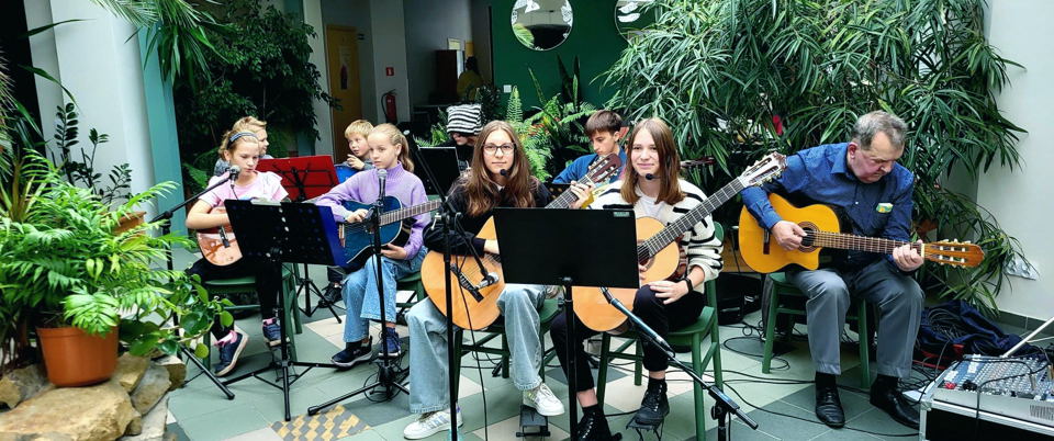 W niedzielę 13 października Hospicjum Palium w Poznaniu wypełniło się dźwiękami gitar, a to za sprawą uczniów i absolwentów Szkoły Podstawowej w Kaźmierzu, którzy pod czujnym okiem Zenona Cioska zaprezentowali swoje muzyczne umiejętności. Ten wyjątkowy koncert przyniósł wiele radości i wzruszeń zarówno pacjentom, jak i ich rodzinom.