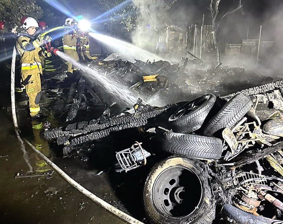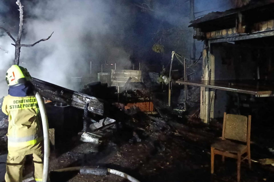 – Spaleniu uległy dwie drewniane szopy, część murowanego garażu, motocykle, tokarnia, piła taśmowa, elektronarzędzia, betoniarka, wyposażenie garażu, piętnaście uli oraz dwa drzewa w pobliżu. Straty wyniosły około 200 tysięcy złotych, natomiast uratowano mienie o wartości około jednego miliona złotych – wyjaśnia Łukasz Kawka.
