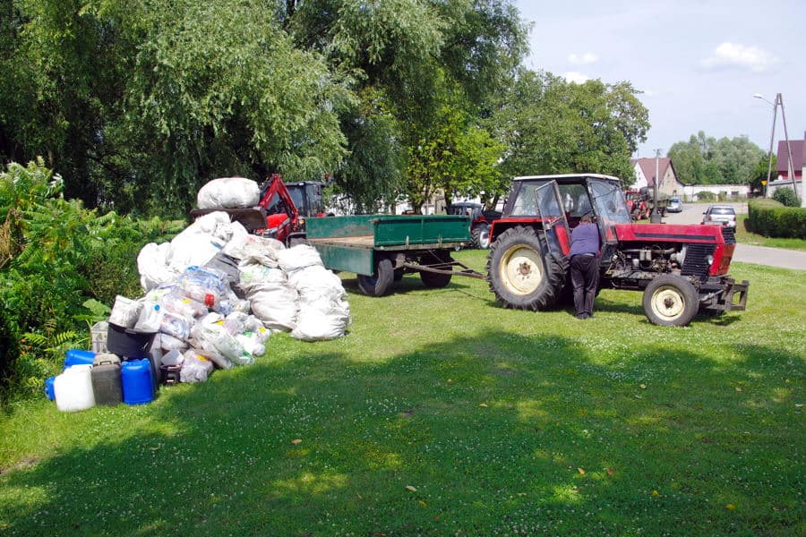 Zainteresowanie zbiórką folii rolniczej w gminie Wronki przeszło najśmielsze oczekiwania. To dlatego, że rolnicy latami kolekcjonowali zużyty sznurek plastikowy, stare worki po nawozach, balotach i big-bagach. Z niecierpliwością doczekali, żeby pozbyć się ich legalnie, ale jak najniższym kosztem. Niektórzy tracili cierpliwość i płacili za ich odbiór wyspecjalizowanym firmom (np. 100 zł za tonę). Temat przez lata powracał jak bumerang na komisjach Rady Miasta i Gminy Wronki, ale nie udało się przygotować atrakcyjnej oferty dla rolników. W dniach 27-28 czerwca gmina Wronki wreszcie zorganizowała zbiórkę folii – co ważne darmową dla oddających. Na zdjęciu – punkt zbiorczy koło świetlicy w Samołężu, czwartek 27 czerwca. RB