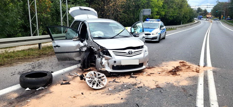 Zablokowana droga krajowa w obu kierunkach, dwa rozbite samochody oraz trzy osoby ranne, to bilans wypadku, do jakiego doszło w samo południe w sobotę 5 października w Bytyniu (gm. Kaźmierz). Interweniowały służby ratunkowe.