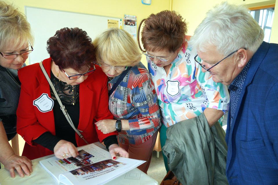 Absolwenci wpisali się do pamiątkowej księgi, a następnie zostali ugoszczeni obiadem i wspaniałym tortem. Goście z sentymentem przeglądali szkolne kroniki i odszukiwali się na zdjęciach rozwieszonych również na szkolnym korytarzu. Ze wzruszeniem wracali do dawnych, młodzieńczych lat. Żegnając się umawiali się już oczywiście na przyszłoroczne spotkanie.