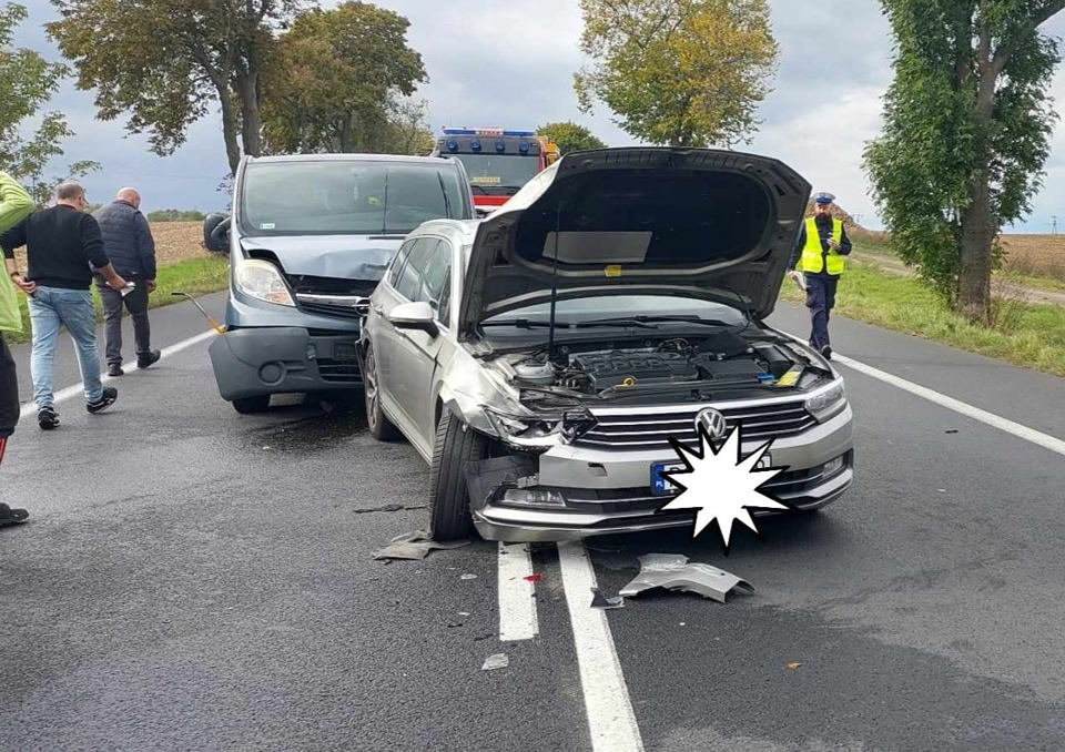 Ze wstępnych ustaleń policji wynika, że mieszkaniec gminy Przykona, który kierował samochodem marki Opel Vivaro, na prostym odcinku drogi najechał na tył jadącego przed nim auta marki Volkswagen Passat, które to w wyniku uderzenia przemieściło się i najechało na tył poprzedzającego go samochodu marki Ford. Wszyscy byli trzeźwi. Pasażerka volkswagena została przetransportowana do szpitala w Poznaniu.