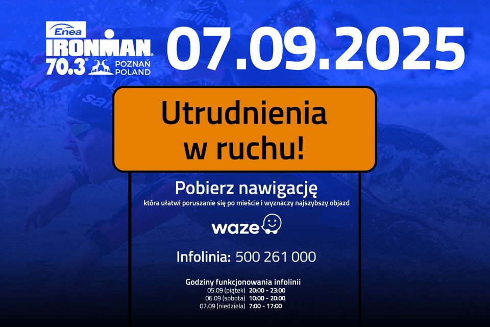 Szczegółowe informacje nt. planowanych zmian w komunikacji miejskiej w czasie organizacji Enea IRONMAN 70.3 Poznań można znaleźć na stronie internetowej www.ironmanpoznan.com.pl, www.ztm.poznan.pl. Dodatkowo, pod numerem telefonu 500 261 000, funkcjonować będzie specjalna infolinia, na której będzie można uzyskać szczegółowe informacje i porady dotyczące objazdów w trakcie trwania zawodów.
