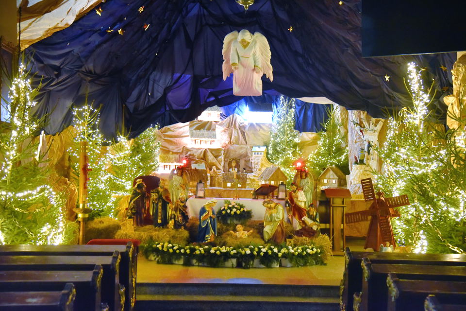 Budowa rozpoczęła się prawie miesiąc przed świętami. Najtrudniejsze i wymagające pomocy parafian było zainstalowanie sklepienia niebieskiego, czyli ogromnej ilości ciemnoniebieskiej materii zawieszonej pod sufitem na metalowej konstrukcji. Sklepienie wyszło „jak żywe”, choć brat Bartłomiej nie jest podobno do końca zadowolony. Będzie więc co zmieniać w przyszłym roku. Na ołtarzu głównym zbudowano Betlejem z szeregiem rozświetlonych domków, ale cóż, jak wiadomo, Święta Rodzina nie znalazła w nich miejsca. Za to czuwa nad nią zatrzymany w locie anioł.