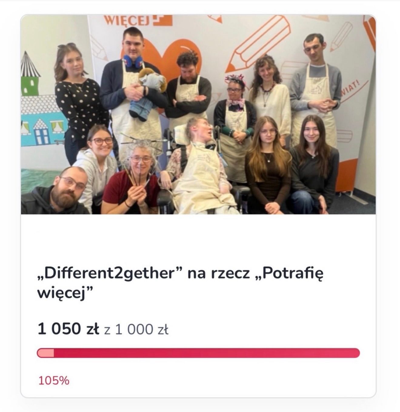 W ramach ogólnopolskiej inicjatywy „Zwolnieni z Teorii” realizujemy projekt społeczny „Different2gether”. Naszym nadrzędnym celem jest wspieranie osób z niepełnosprawnościami w budowaniu poczucia własnej wartości, rozwijaniu ich potencjału oraz tworzeniu przestrzeni opartej na akceptacji, empatii i wzajemnym szacunku.