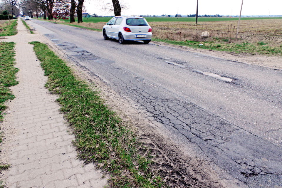 Zdjęcie: W najgorszym stanie jest odcinek drogi nr 1845P między Ordzinem i Pęckowem. Przyczynił się do tego ciężki sprzęt działający przy modernizacji linii kolejowej nr 351. Codziennie drogę zajeżdżają ciągniki siodłowe z ciężkimi naczepami skracąjące sobie drogę z Wronek do Szamotuł