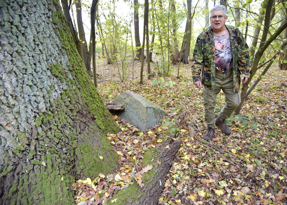 Andrzej Jęczmyk (na zdjęciu), szamotulski myśliwy oraz niestrudzony badacz przyrody i dziejów Karczemki (gm. Obrzycko), odkrył ostatnio w lesie przylegającym do figury św. Mikołaja w Słopanowie trzy potężne dęby (obwód największego 476 cm). Usytuowanie ich w jednym rzędzie wskazuje, że raczej zostały posadzone ręką ludzką. Z widocznych wyraźnie śladów cięć sanitarnych konarów wynika jasno, iż o drzewa dbano. Najciekawsze jest jednak to, że przy pniu każdego z dębów wkopano głazy i to ociosane. Jakie owe kamienie mogły mieć znaczenie, czy dęby to pozostałość dawnego założenia parkowego – trudno powiedzieć. Może ktoś znający dobrze historię Słopanowa pomoże rozwikłać zagadkę trzech dębów i trzech głazów?