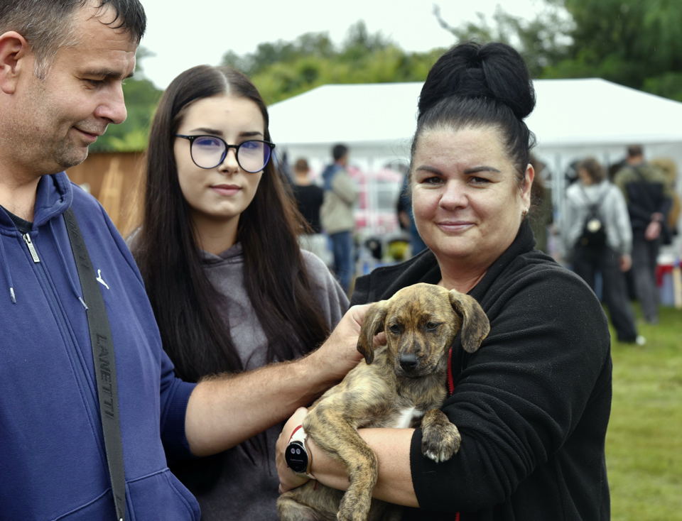 Foto nad tekstem: Sobotni piknik okazał się szczęśliwym dniem dla szczeniaka Kombi. Znalazł nową rodzinę